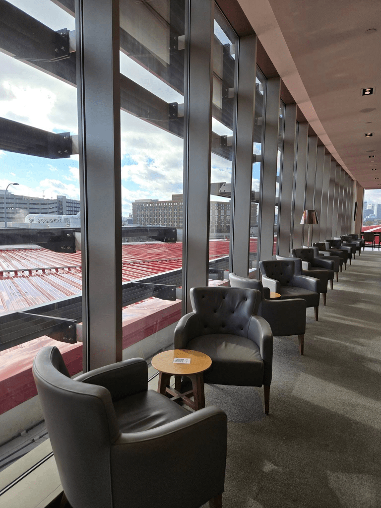 We are heading to Asia, so let’s start with the airport lounge at Logan in the new Terminal E, it’s stunning.